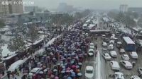 11月24日,河南迎來入冬首次大范圍降雪,受暴雪影響,道路擁堵,公交車寸步難行,長途客運(yùn)列車基本停運(yùn),多趟列車晚點(diǎn)?! ?視頻截圖) 視頻為11月24日上午9點(diǎn)多,在河南鄭州市北區(qū)劉莊公交車站的航拍畫面。據(jù)央視新聞報(bào)道,該公交車站是鄭州北部上班族最大的乘車點(diǎn),每天近10萬人在這里乘車到市區(qū)。因路面積雪和結(jié)冰,造成了嚴(yán)重的交通堵塞,甚至有公交車半小時(shí)才走了200米,航拍時(shí)現(xiàn)場有約1000人滯留