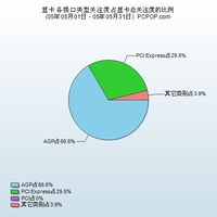 ??? 如今大家在選擇顯卡時,除了考慮顯示芯片與顯卡品牌外,爭論最多的就是購買AGP還是PCI-E?而根據我們PCPOP的產品關注度調查中顯示,2005年7月份關注PCI-E顯卡占總人數的41%%,相比同年6月份上升了5.6%%,相比同年5月份更是提升了11.5%%。???2005年5月顯卡關注度調查???2005年6月顯卡關注度調查???2005年7月顯卡關注度調查???? 從目前的市場形式來看,同芯