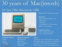 ??? 2014年1月24日是蘋果Macintosh電腦面世30周年紀(jì)念日,這個(gè)時(shí)候一起來回顧下過去30年中那些名氣一時(shí)的Mac電腦將很有意義。每年我們都選擇一款最出名的 Mac電腦。圖表中的價(jià)格已經(jīng)按照今天的標(biāo)準(zhǔn)提升,比如當(dāng)年購買128K需要2495美元,也就是等于今天花費(fèi)5600美元。 ??? Macintosh 128K作為LISA的下一代產(chǎn)品,價(jià)格更便宜。LISA電腦當(dāng)時(shí)售價(jià)高達(dá)99