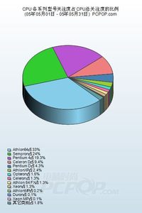 ??? 自從本站加入了產(chǎn)品查詢庫以后,受到廣大消費(fèi)者的支持,在此十分感謝。所有消費(fèi)者在PCPOP查詢產(chǎn)品的過程,標(biāo)志著這些消費(fèi)者對(duì)某產(chǎn)品的關(guān)心和關(guān)注,這比所有的調(diào)查都具有說服力。轉(zhuǎn)眼間已經(jīng)到了六月,我們將2005年5月處理器產(chǎn)品的用戶查詢數(shù)據(jù)拿出來分析一下,希望能對(duì)消費(fèi)者的選購提供幫助。在此篇文章里,我們盡量不用過多的語言,而是用數(shù)字說話。究竟如何選擇,還是由您自己來分析。????? 數(shù)年來,處理