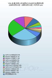 ??? 一直以來,在顯卡市場中,中高端產(chǎn)品和低端產(chǎn)品是人們給以目光最多的地方。從5月本站調(diào)查的關(guān)注度來看,這個(gè)規(guī)律也沒有被打破。????? NVIDIA的GF6600系列產(chǎn)品以及ATI的X700系列產(chǎn)品分別以26.3%和11.3%占據(jù)著排行榜的第一位和第三位,很好的說明了當(dāng)今千元級(jí)顯卡的重要性。性價(jià)比為主要地位的當(dāng)今市場,千元級(jí)產(chǎn)品擁有的性能和價(jià)位足以令它們有如此的待遇。????? 此外,ATI的