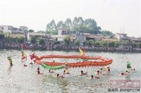 水上舞龍絕技十分精彩?! ∽蛉眨瑸槠趦商斓膹V東省攝影家協(xié)會“攝影大篷車下基層”(西樵站)暨西樵鎮(zhèn)“名山名鎮(zhèn)有倩影”攝影比賽落下帷幕,逾兩百名攝影發(fā)燒友采風西樵,領略本土人文風景魅力?! ∽蛉丈衔?,西樵松塘村旗幟飄揚,村民里三層外三層地圍在松塘村月池邊,期待水上舞龍首度現(xiàn)身?! ∨e羅傘、撐旗幡、敲鑼鼓……在區(qū)氏大宗祠,西樵游泳協(xié)會20名游泳健將手持30多米長的火紅水龍和4條青龍,在鏗鏘的鼓樂