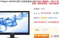????泡泡網(wǎng)液晶顯示器頻道3月20日?一個多月前,飛利浦一款超人氣24吋H-IPS廣視角寬屏液晶顯示器240PW9突然猛降600元,跌破3000元,僅售2599元,一時間被搶購一空,在近期供貨充足之后,京東又開始了新一輪的促銷,再降100元,很有誘惑力! ??? 目前飛利浦240PW9在京東商城僅售2499元(點擊購買),是目前采用H-IPS廣視角面板中,最便宜也是最超值的24吋16: