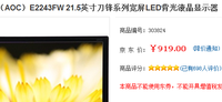 ????泡泡網(wǎng)液晶顯示器頻道3月30日?AOC在去年推出的“刀鋒”系列由于外觀設計時尚,機身超輕薄,并且價格便宜,創(chuàng)造了其單一型號銷量的記錄,這款低價化的高端產(chǎn)品,確實成為不少消費者的首選。該機的21.5吋機型在年后的價格一路上升到959元,而近期京東商城降價至919元【點擊購買】,是目前最低的價格。 ??? 該機采用超薄LED背光液晶面板,機身厚度僅為12.9mm,上市初期是全球最薄的