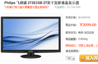 ????泡泡網(wǎng)液晶顯示器頻道3月30日?飛利浦在近期也推出了一款27吋16:9寬屏,分辨率1920×1080,采用TN液晶面板,型號為273E3SB。這是飛利浦推出的第一款27吋寬屏,該機的參數(shù)以及配置較為一般,沒有機體功能,配備VGA、DVI雙視頻接口。近日,該機在易迅網(wǎng)的價格僅2099元,比京東商城的2199元還要便宜100元,不過僅限上海地區(qū)。 ??? 在性能參數(shù)方面,官方標稱該機