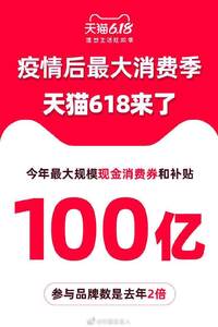 陳惺惺 · 2020-05-19 14:06 - 天貓618官宣!預計將發(fā)放超過100億元補貼,優(yōu)惠史無前例