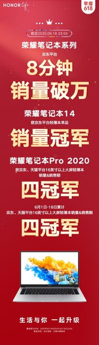 陳惺惺 · 2020-06-19 10:29 - 榮耀618戰(zhàn)報(bào):榮耀筆記本系列8分鐘銷量破萬