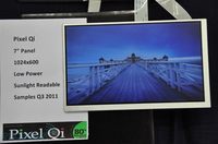 ????泡泡網(wǎng)平板電腦頻道6月1日?在今年的臺(tái)北Computex 2011展會(huì)上,Pixel Qi展出了一種新型顯示面板,它包括7英寸和10.1英寸兩種,是目前平板電腦中最常用的兩種尺寸。它建立在液晶顯示的基礎(chǔ)上,改善了液晶光線(xiàn)反射和高耗電量的缺點(diǎn),并且進(jìn)一步提升了目前兩種尺寸的分辨率,其中7英寸分辨率達(dá)到了1024×600,10.1英寸的分辨率達(dá)到了1200×800,而功率更是保持在0.4W和2