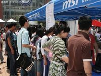 ??? 天津毗鄰北京,在北京南站乘坐城際列僅用半個小時就抵達(dá)天津,筆者不得不感嘆去天津比上班用時都短。作為一級城市的天津直轄市,全市擁有超過50所大學(xué)的地域,自然是微星2009校園行的必經(jīng)之地。 ??? 我們的第一站第一站選擇了歷史悠久的天津工業(yè)大學(xué) ??? 看來微星在學(xué)生們的認(rèn)知度很高,從女同學(xué)駐足數(shù)量就能看出,很多女同學(xué)不僅知道微星的板卡,例如微星還有筆記本等數(shù)碼產(chǎn)品,雖然此次微星活動