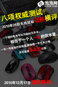 ??? 泡泡網鼠標鍵盤頻道12月15日 一個紐扣電池可以污染60萬升水,相當于一個人一生的飲水量,一節(jié)一號電池爛在地里,能吞噬一平方米土地,并可造成永久性公害...。在2010年年末之際,泡泡網鼠標鍵盤評測室即將為大家奉獻上2010年26款主流無線鼠標功耗測試的精彩內容,精彩不容錯過。 《泡泡年度大戲!26款無線鼠標功耗橫評》 【外設音頻互動群:71929738】 【鍵鼠頻道首頁】【